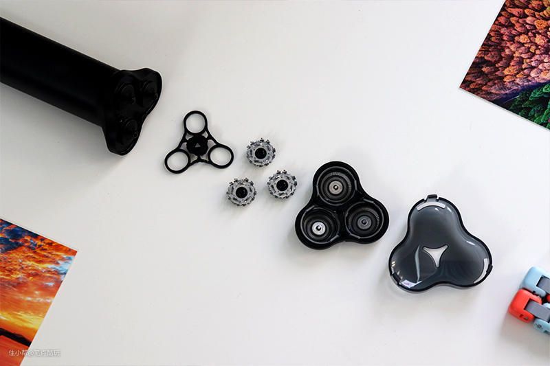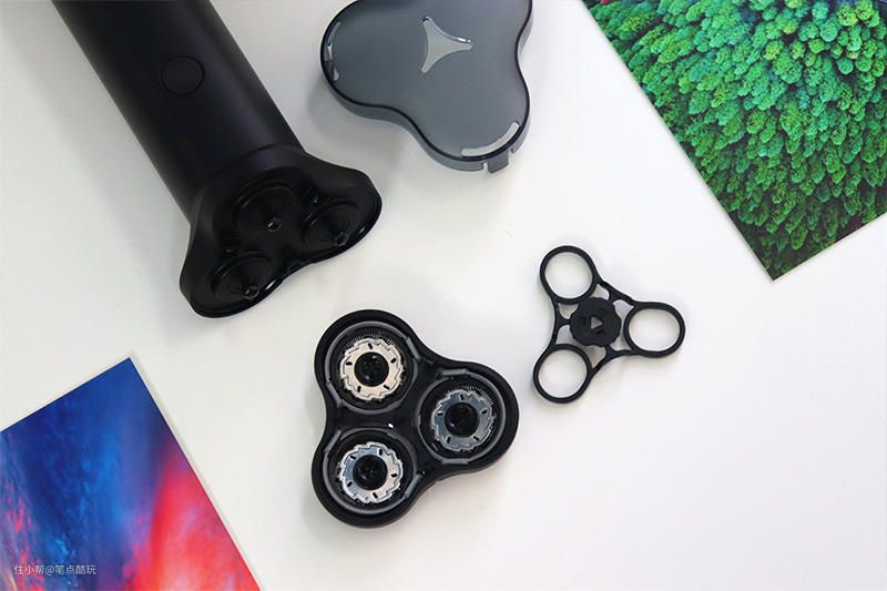 没有采用磁吸式,米家剃须刀S300用的是卡扣,但拆卸也很简单,在靠后的凹陷处扣开即可,里面配件可以一一拆下。