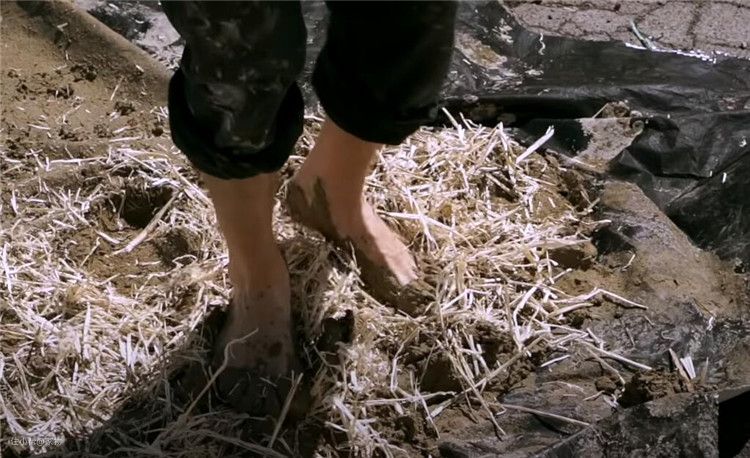 所谓大自然的材料,就是泥土、稻草、沙子混合而成。