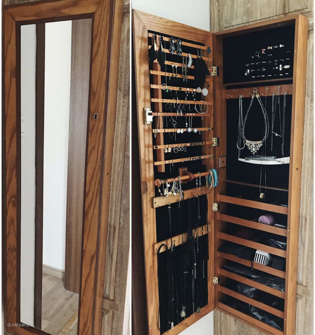 女生的首饰就像是衣服一样,多种多样,除了柜内的一些首饰盒,其实更建议定做这种薄薄的首饰柜,不占地方,收纳量大,这样再多的收拾都不怕了。柜门是镶嵌的镜子,方便照镜子搭配,非常适合爱买首饰的姑娘。