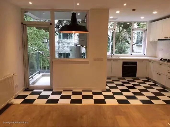 2、在施工前要精确计算。因为地砖铺贴时需要水泥垫层,会比地板厚一些,所以在找平时,要把高度差预留出来,最后才能保证地砖和地板在同一平面。接缝处通过打胶的方式处理,颜色建议采用与地板同色系的,尽量做到视觉上的“无缝”衔接。