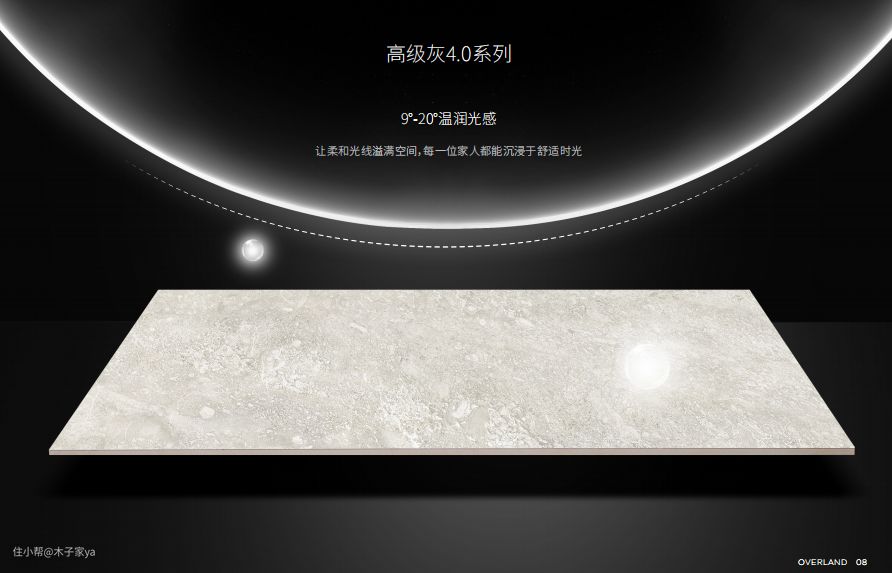欧文莱瓷砖高级灰4.0系列在光泽度上设计,就很人性化,灰色分为三个系列33-、55-、75-,对应的光感度9°-15°柔光、80°-90°高光,你可以根据自己家里光线和风格需求,选择合适的光泽度的瓷砖。