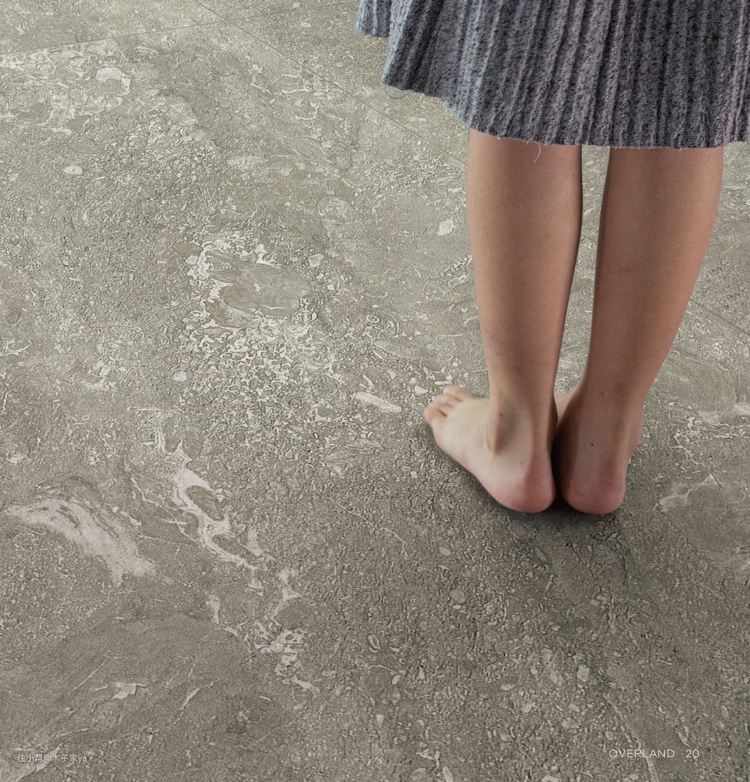在耐磨性上,欧文莱素色瓷砖高级灰4.0系列表面看起来像石头,带点凹凸不平,但是摸起来很细腻柔滑,耐磨性也非常好,脚踩上去很舒服。