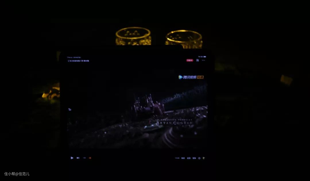 客厅看权游,用宜家电池灯在iPad后面补光