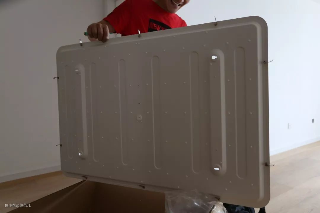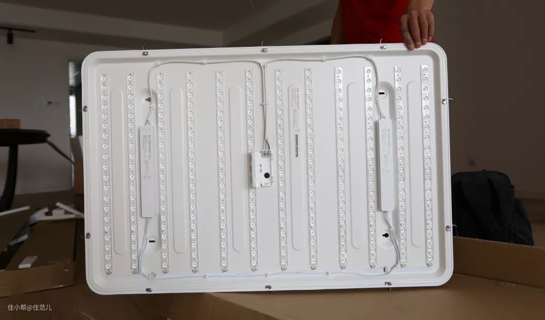 师傅首先取出的是LED灯的底盘,底盘尺寸差不多1米*半米,怪不得能hold住25-35㎡的空间。