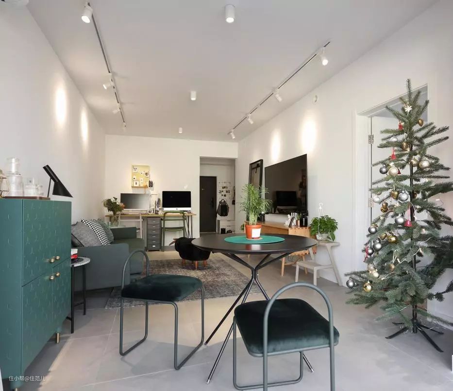 但在周边加一排筒灯、轨道射灯等点光源,效果好了不少,空间也显得更高级。