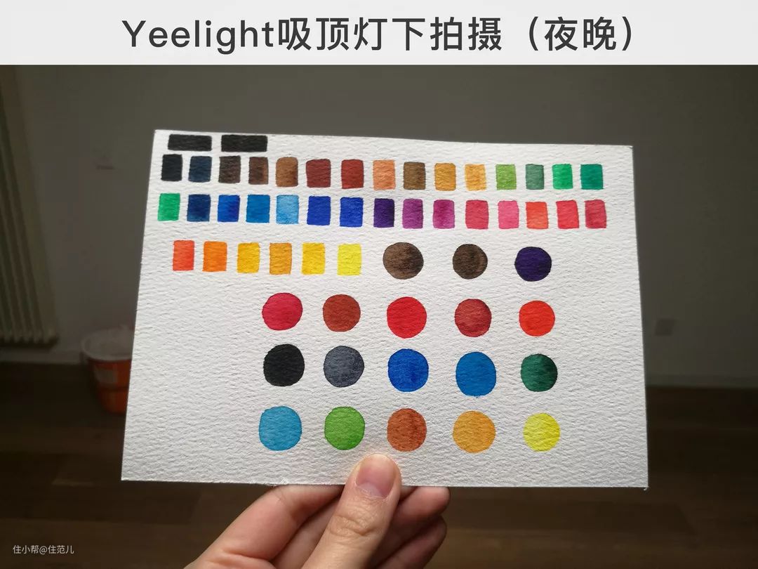 鉴于Yeelight原料是富士康出品,据说有国内最专业的吸顶灯测试实验室,具体表现如何,我们可以用水彩色卡简单拍照对比一下。