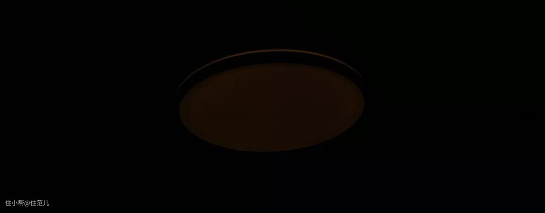 灯罩装上后,光线马上变得温柔,边框上的一圈光缝正好能照亮附近的天花板,不像有的吸顶灯,灯框旁边是黑的。