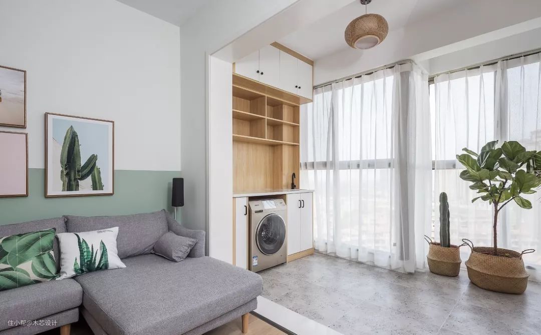 ③晾晒问题,阳台被打通后,使用的功能不仅仅只是为了晾晒衣物。如果只有一个阳台,衣物晾晒可以这样解决,买一台烘干机,春夏秋冬都适用、备一台可移动的室外晾晒架,都很方便。