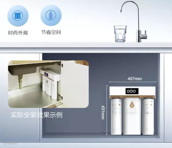 不带储水箱、小体格的也就三四十公分,正常水槽下橱柜都放得下,台上的往桌子一放、水管一接、电源一插,就完事儿了。