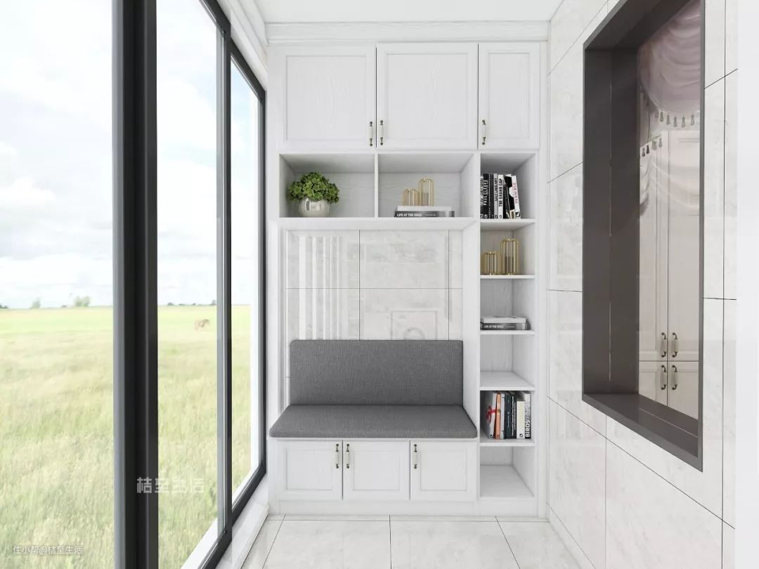 阳台柜内除了放清洁用品、绿植或装饰品,爱书之人还可以在阳台柜内留有放书籍的空间,放上一张舒服的椅子,就可以惬意地倚着看书啦~