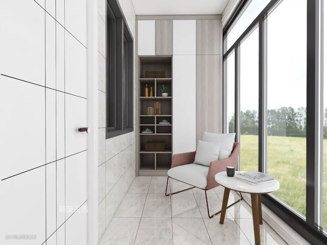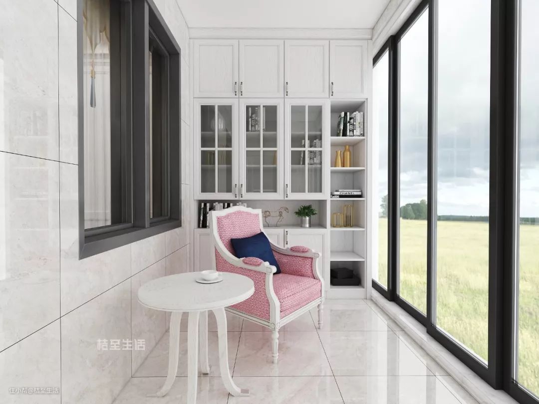阳台光线好、风景佳、又通风,非常适合阅读。在空间允许的情况下可以将阳台打造成融合阅读区的生活阳台,那阳台就不止是晾晒衣物、收纳杂物的“晾衣房”,而是集赏景、养花种草、阅读等于一体的家中休闲之处。