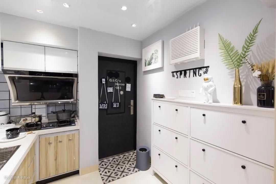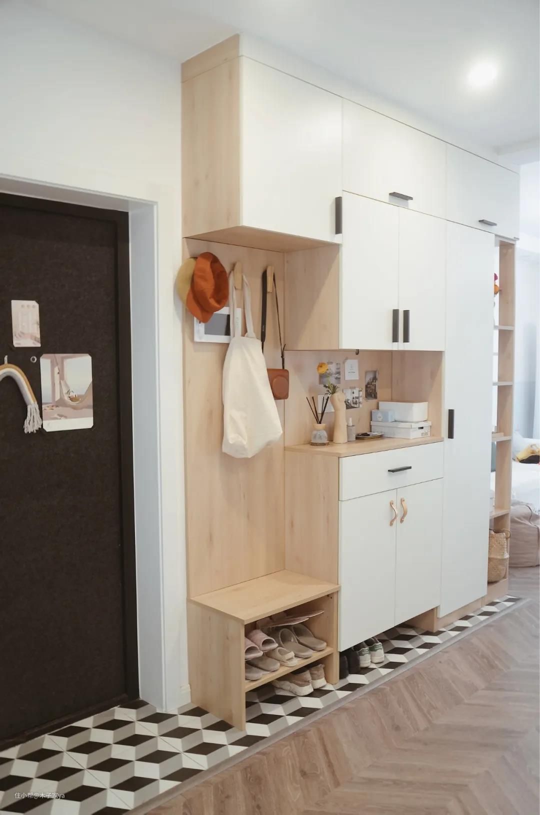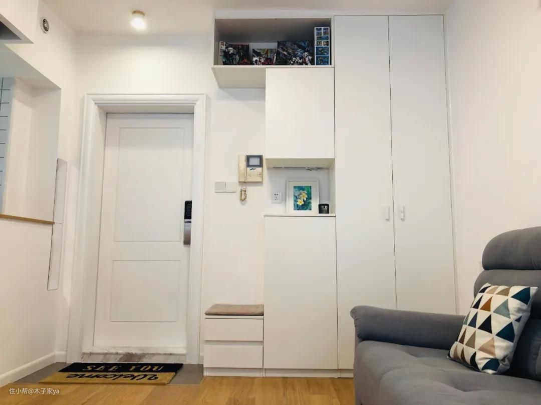 你家的玄关鞋柜放哪里了?如果你家也是进门没有玄关,可以考虑以上这样设计哦,很好用。