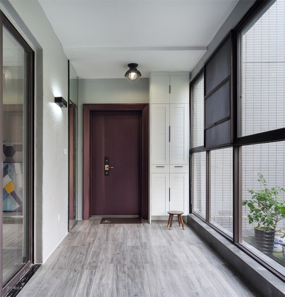 大门和鞋柜平行设计,要注意鞋柜的设计不会影响动线流畅,不然阻碍空间布局就不好了。
