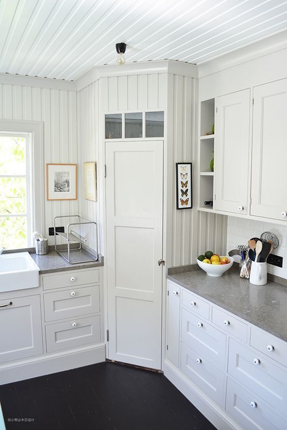 对于使用面积不足的,我们可以考虑在厨房转角处打造一个储物间,同样也很方便。