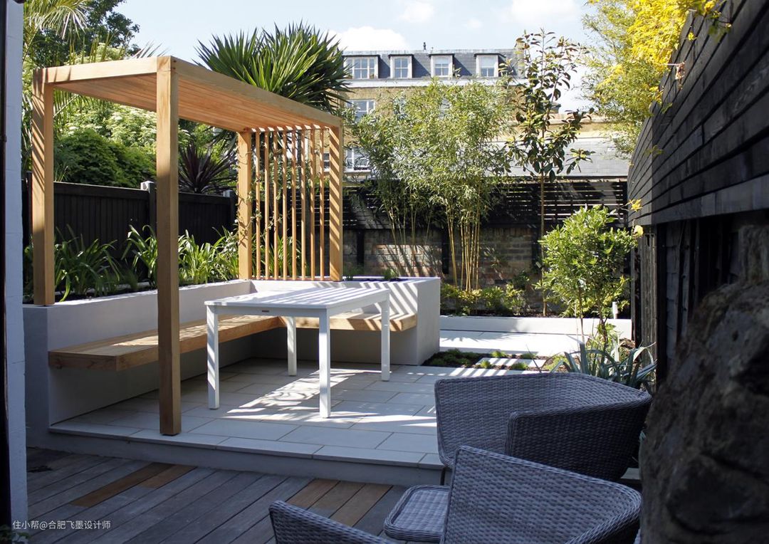 室内讲究整体感,庭院自然也是,代表了整个家的另一个脸面,将花坛、凉棚、室外餐厅3合1,不仅给院子腾出了更多的活动空间,也少了些凌乱感,更有豪宅别院的feel!