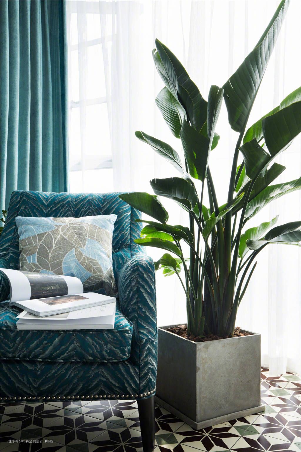客厅是家里的公共区域,空间比较宽敞,比较适合搭配大株植物,营造轻松惬意的氛围。植株以其高低错落的形态,丰富了客厅的室内布局,同时也软化了线条的硬朗感,高挑的植株伫立在空间中层,减弱了低矮家具的平面单调感丰富了空间层次。