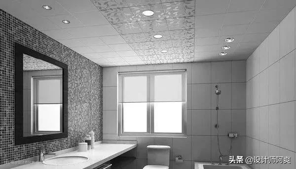 水汽都是往上走的,所以在卫生间的顶面防潮也不容忽视,与不防水的石膏吊顶相比,更建议使用防潮抗污的铝扣板吊顶或者集成吊顶,清洁起来也更加便利。