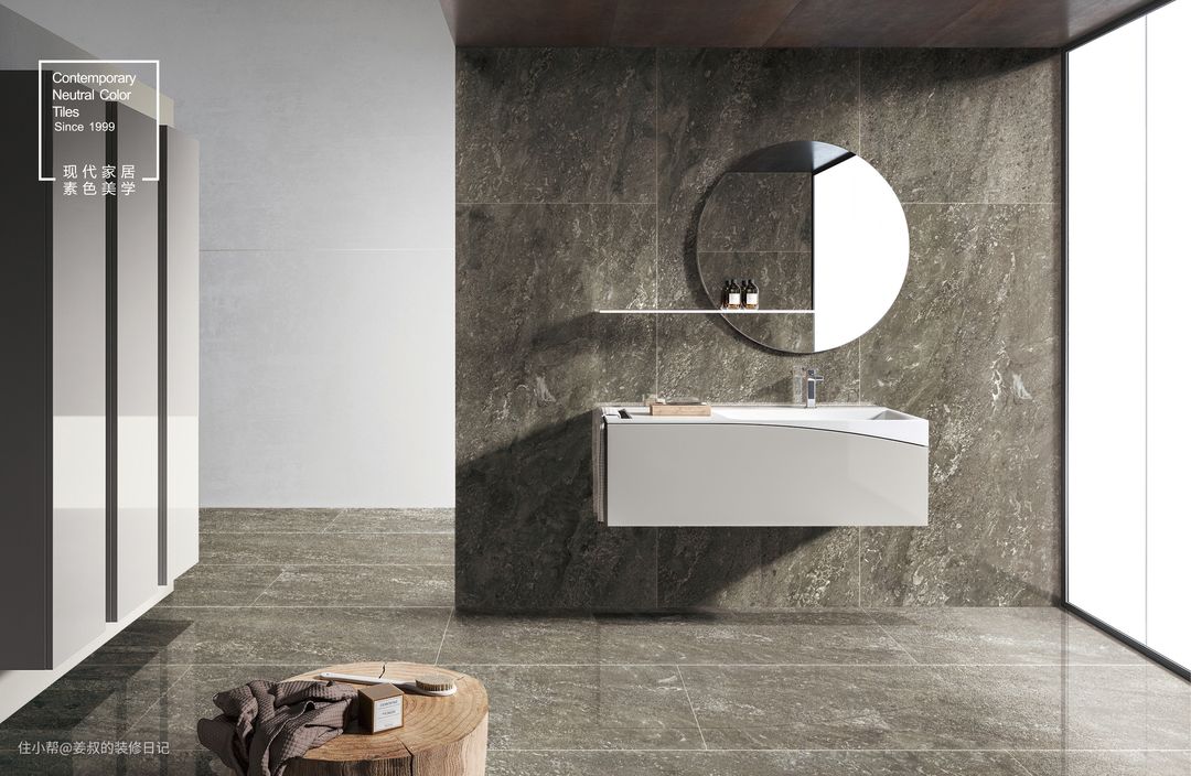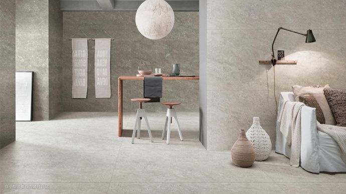 如果你仔细看很多耐看的装修风格,主基调基本都是素色,白色和灰色居多,如果觉得白色过于单一,可以选择灰色,所以这几年装修界一直都很流行高级灰,灰色瓷砖对软装包容度非常高,同时在视觉效果上也非常棒。