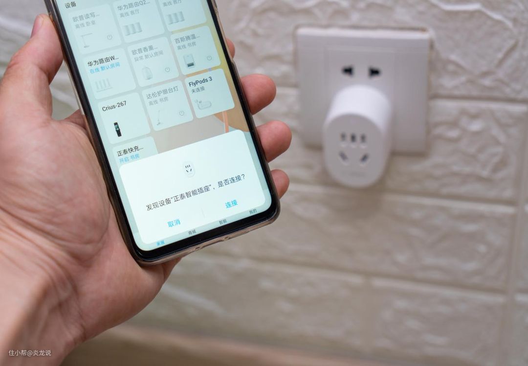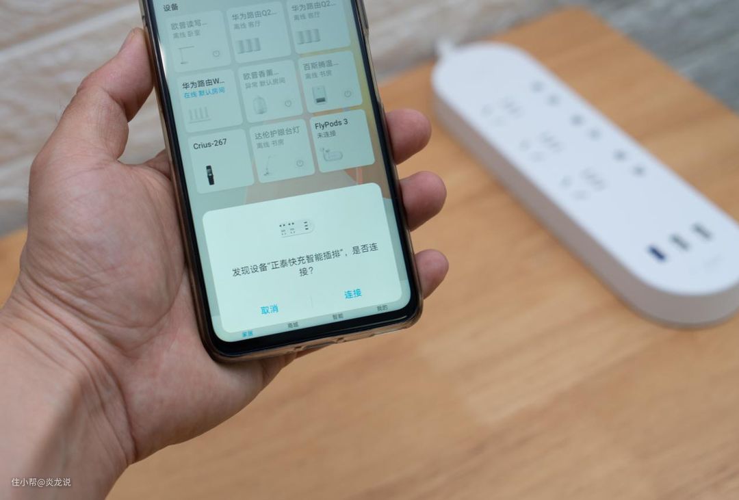 HUAWEI HiLink正泰智能插座和智能快充插排配置时起来超级简单,打开华为"智能生活"APP之后,APP会自动提示发现了新设备。