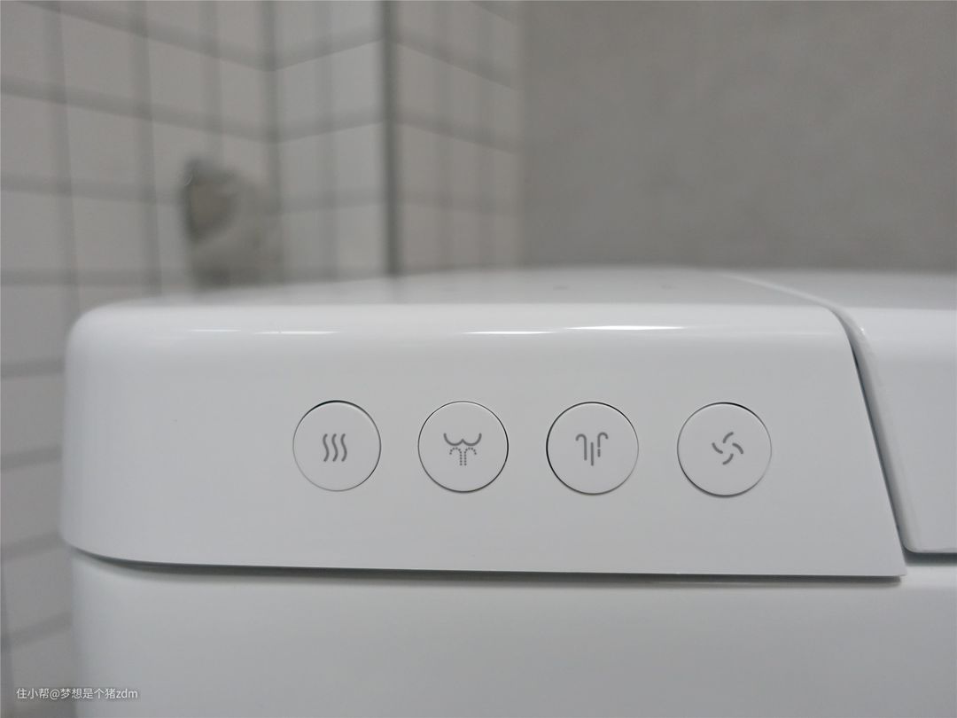 除了遥控器操作外,马桶的右侧同样有四颗功能按键,包括了烘干、臀洗、妇洗和冲水。
