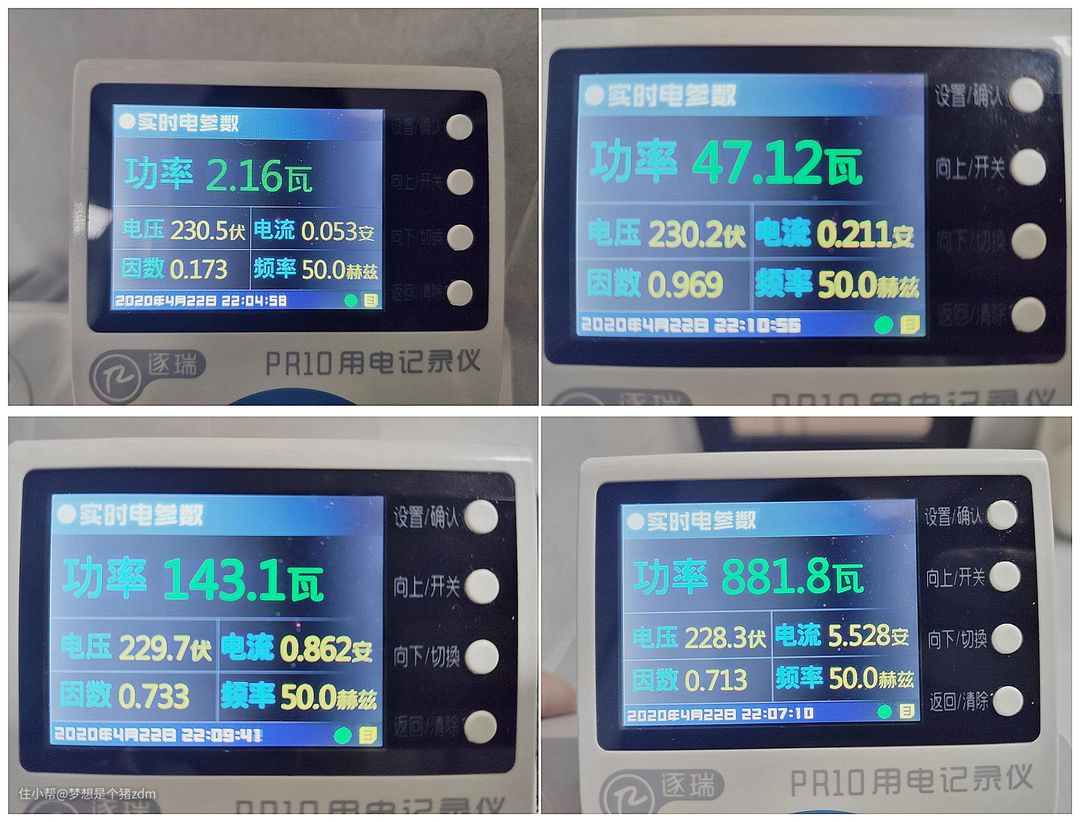 为了测试这款智能马桶的耗电情况,我用用电记录仪记录了马桶不同工作状态下的实时功率情况。