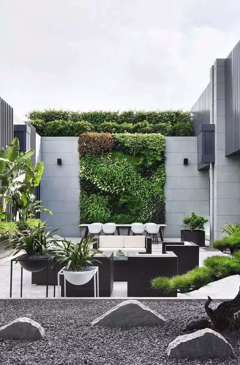 绿植墙、现代家具、石材景观,体现出现代简约的美,有格调,有韵味