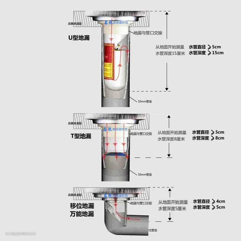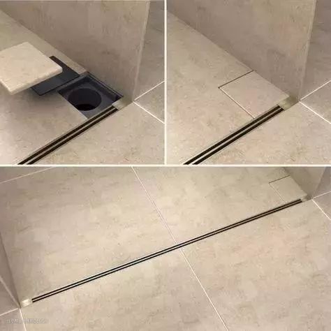 为了装饰效果,在一些高端场合,常常采用条形地漏或暗地漏。定位地漏时需提前做好地面排版,实地放线,尽量设置在靠近下水管处。地漏、排水管口径需符合排水流量要求,排水管需设置盛水弯。