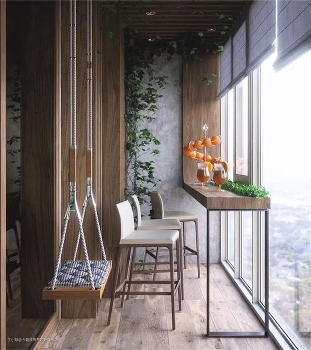 吧台很多人第一个想到装的空间应该是厨房,其实还可以装到阳台,或者靠墙来设计。