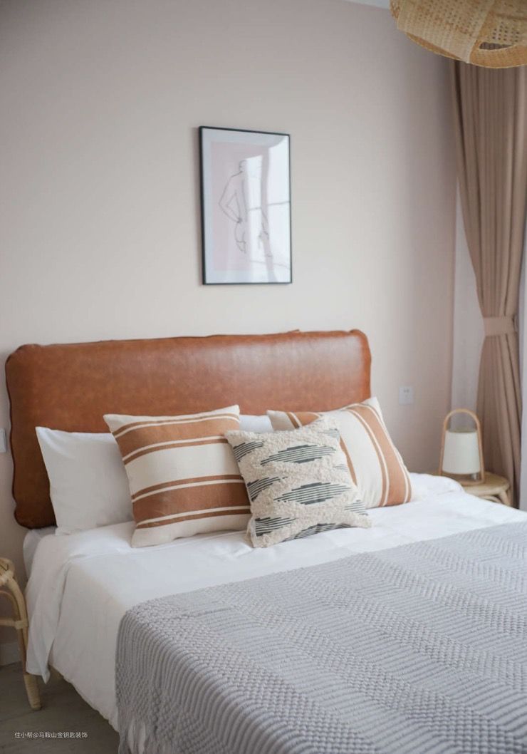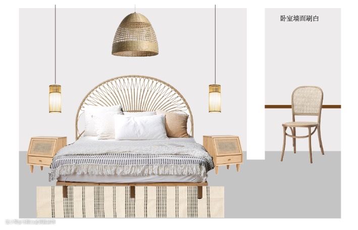 主卧用了大气的藤编床和网红藤编床头柜。
