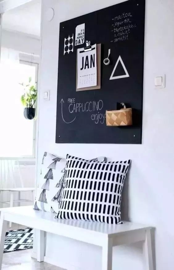 除了玄关鞋柜的摆设之外,在这种原本没有玄关的户型中,增加一面玄关镜,搭配上墙面装饰,一张梳妆台,贴墙摆放不占空间的同时,不会有进门见厅的尴尬。