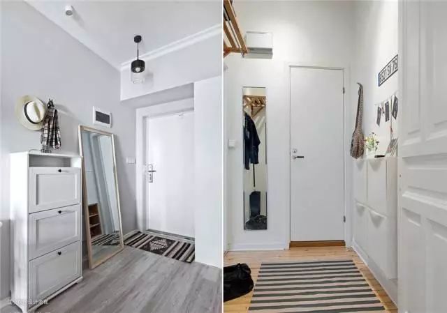 不是每一种开门见厅的户型都可以通过设计一个假玄关来化解的。例如小户型的限制更大,利用隔断墙/玄关鞋柜来设计假玄关,占据太多面积,不太实际。利用贴墙家具转移视觉焦点比较实际。