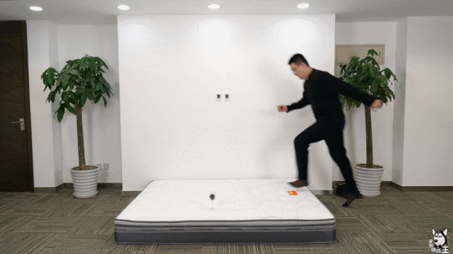 床垫的支撑性和抗干扰性方面我也进行了简单的测试。支撑性上,站在床垫上或坐在床垫上下陷感比较明显,平躺的话下陷没那么大。