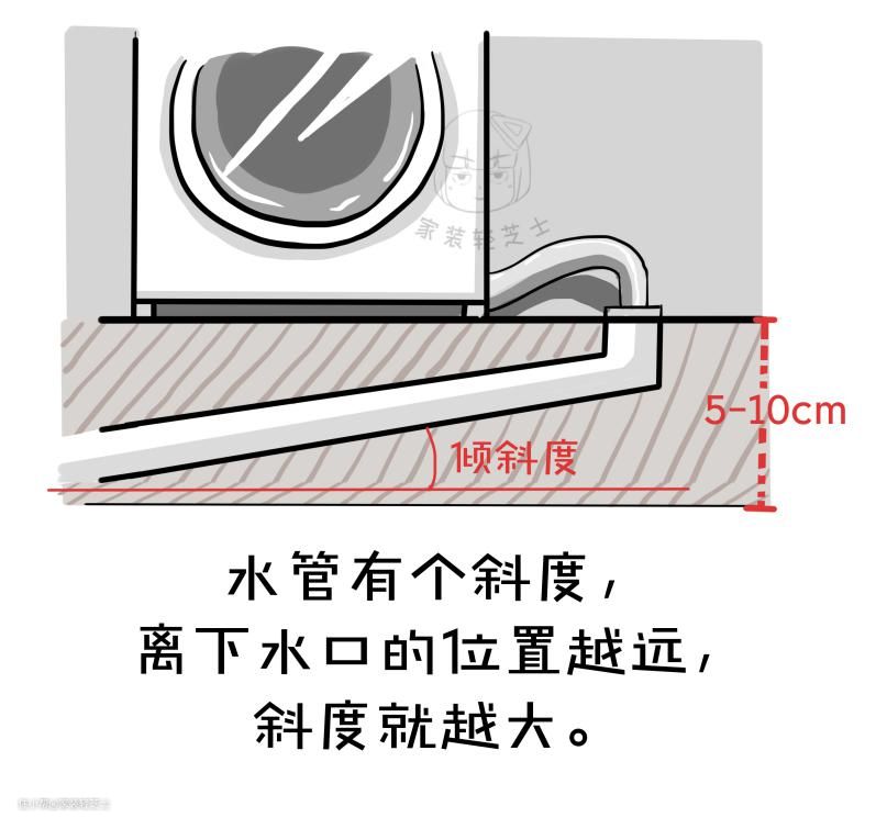 埋在地底的水管会有个斜度,会随着距离下水口的位置变化,位置越远斜度就越大。