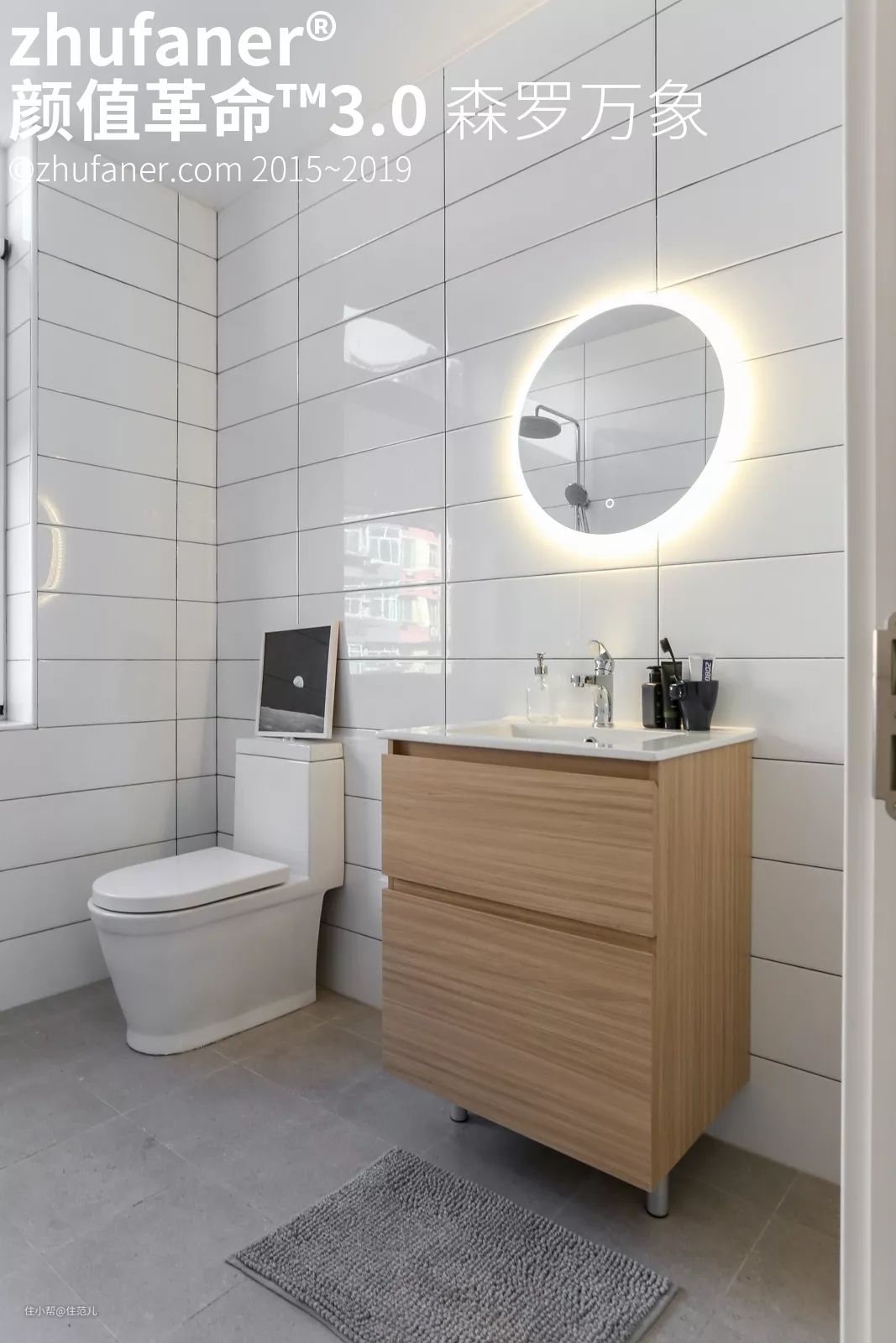 ②小白砖/小白面包砖+深灰色缝
