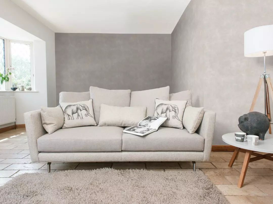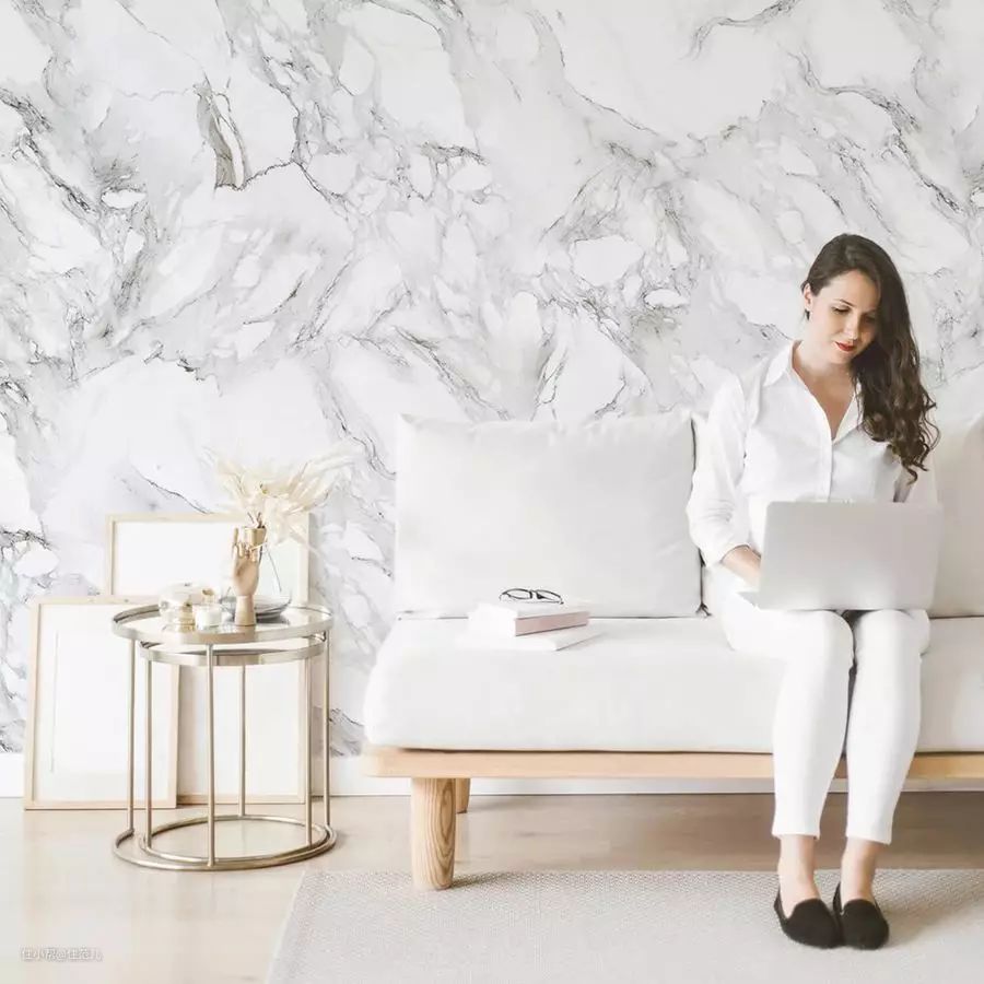 预算不够做大理石的背景墙,就贴个仿大理石纹理的壁纸吧,还能实现“无缝铺贴”效果。仿清水混凝土的壁纸同理。