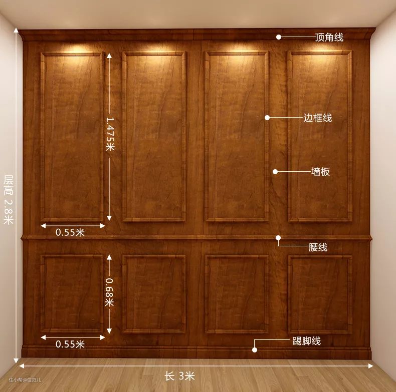 一套集成墙板包含墙板、踢脚线、装饰线条等配件,都做成固定尺寸的模块,在现场直接组装,多余部分裁掉就行。强调施工快,但少不了墙面找平这个步骤。