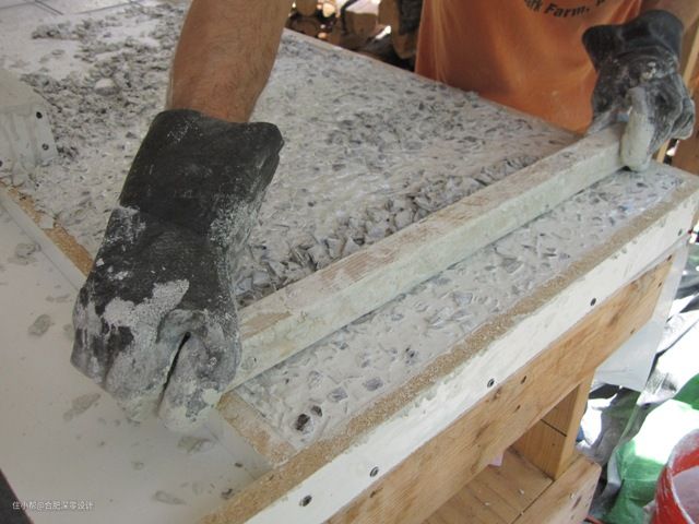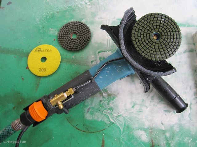 剩下来就是最后一步了,用抛光机进行打磨,将其台面和边缘进行处理,让一些玻璃碎片露出来就好了,这样台面基本就完成了。