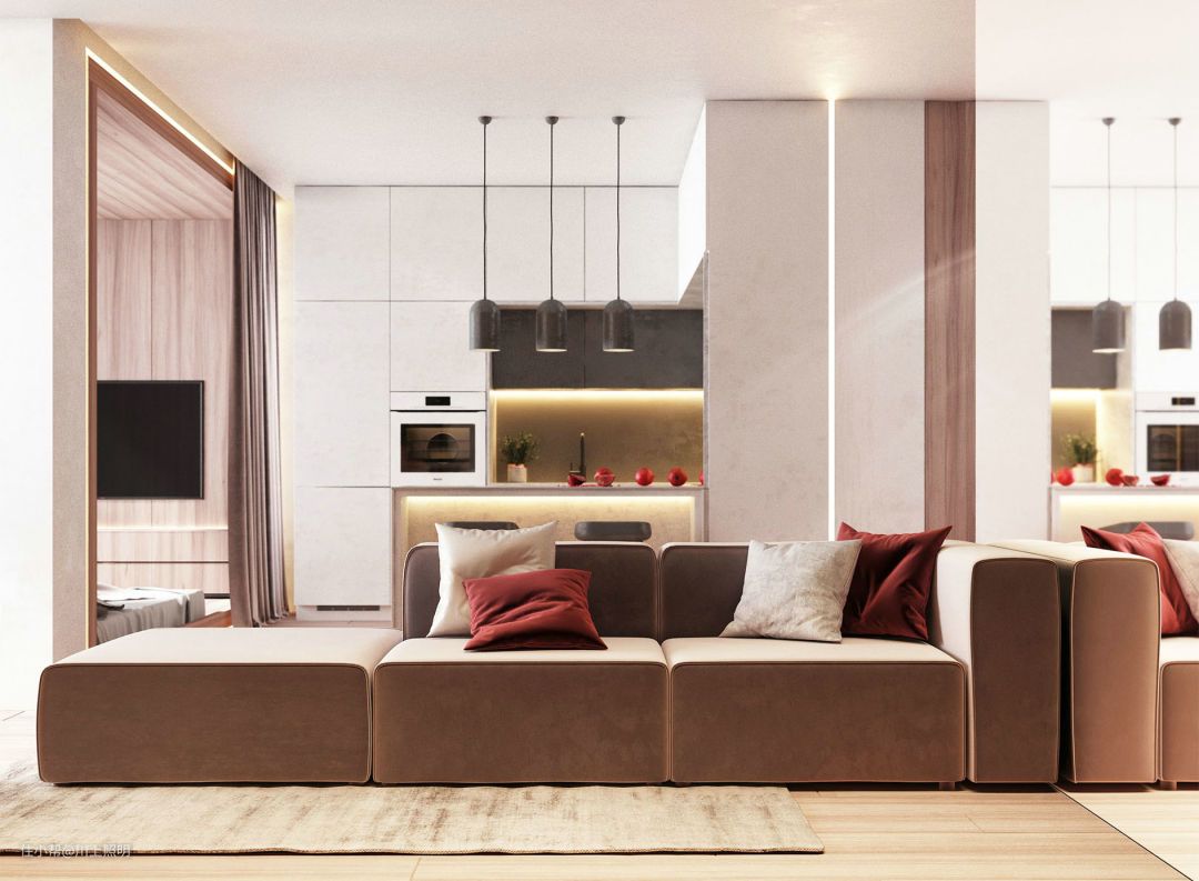 单侧出光的照明方式相较于圈顶灯带来说,给人整体的设计感会更强,因为它会给空间一个明显的光影变化,来提升整个空间的质感。