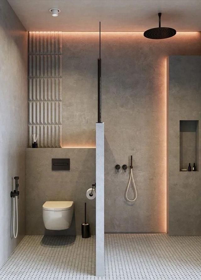 大多数人的第一反应一定是新砌一整面墙,就可以明确的进行分离,这应该是最正经的卫生间隔断墙的做法了。其实卫生间隔断墙的做法还有很多“不正经”的做法,而且还是颜值爆表,例如卫生间做半墙设计。