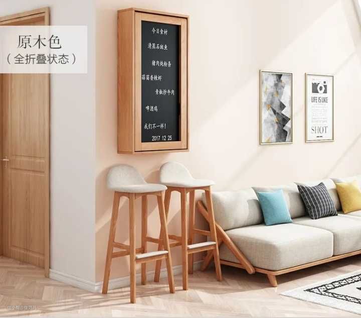 不想占地面空间留卫生死角,可以选择挂墙款,折叠起来的吧台底部是黑板,还能记录菜谱。