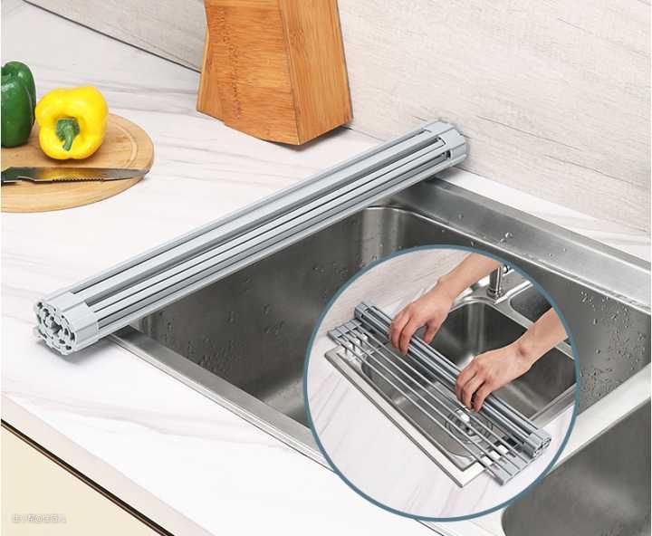 厨房的碗碟和蔬果,清洗过后都需要沥水处理,折叠沥水架放在水槽的上方使用,不占水槽空间,非常方便。
