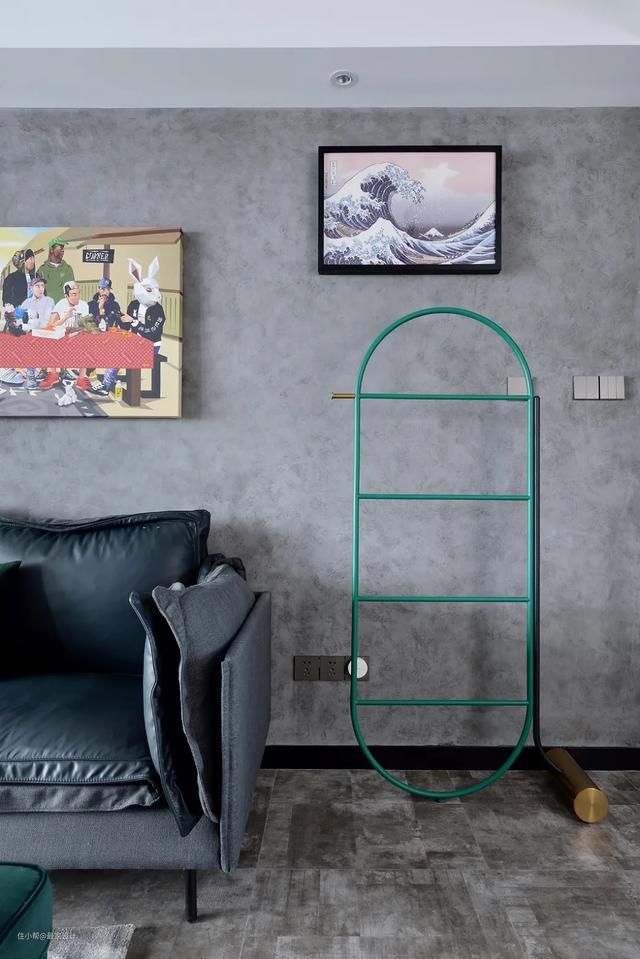 再说说这个灰度的配色,墙面的水泥漆也是小品牌,性价比高,但是很吃功夫。设计师朱志明会在现场调颜色,然后在小区域做调试,再拿着电脑做预演,男主人也会在现场跟着看调色,达到了大家都满意的效果,才开始整面墙的涂刷。老房子的墙面墙面平整度不好,需要现场做水泥漆,很考究油漆师傅的手艺,师傅要根据情况调好比例,再用批刮腻子的方法刮平,待干后打磨,这样才能保证漆面平整,以后不会开裂。水泥漆的墙面也是让“我”颜值爆表的关键项,真的要给满分呀!