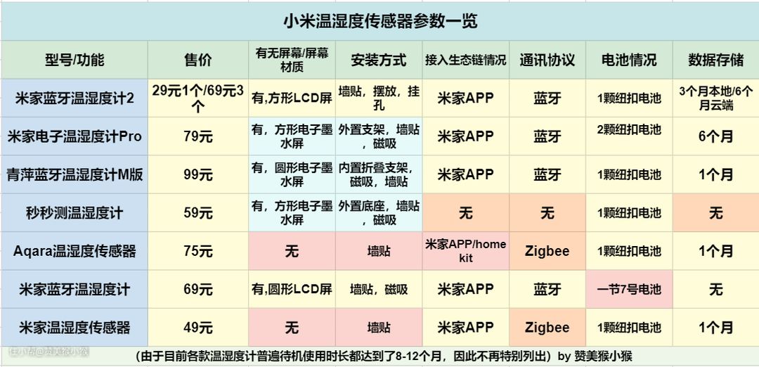 目前,小米在售的几款温湿度传感器,通讯模式各异,形状各异,配置也不同。对于初次购买的消费者来说很难花时间来研究其区别。那么就让我在本文为你揭开这些区别,并提供购买建议吧。