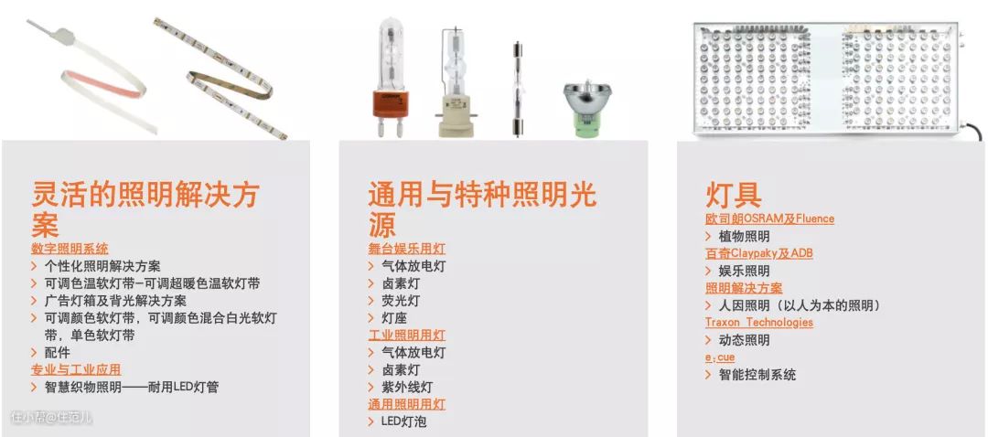 养鱼爱好者、汽车改装爱好者、户外运动爱好者对欧司朗都很熟,他家的卤素灯、LED芯片、传感系统都是世界一流,北京大兴机场的全LED室内照明是他家做的。