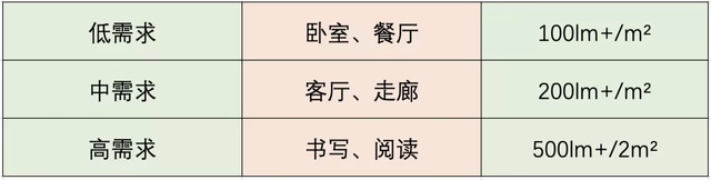 普通生活状态用的,比如在客厅,1平方米200流明(单位)就足够用。