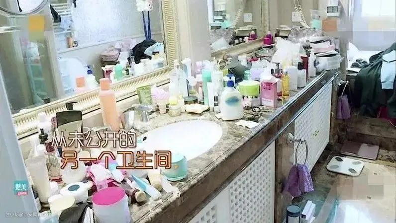 本来卫生间面积就不大,满满当当塞入各种物品,除了“拥挤”,似乎找不到合适的形容词了。