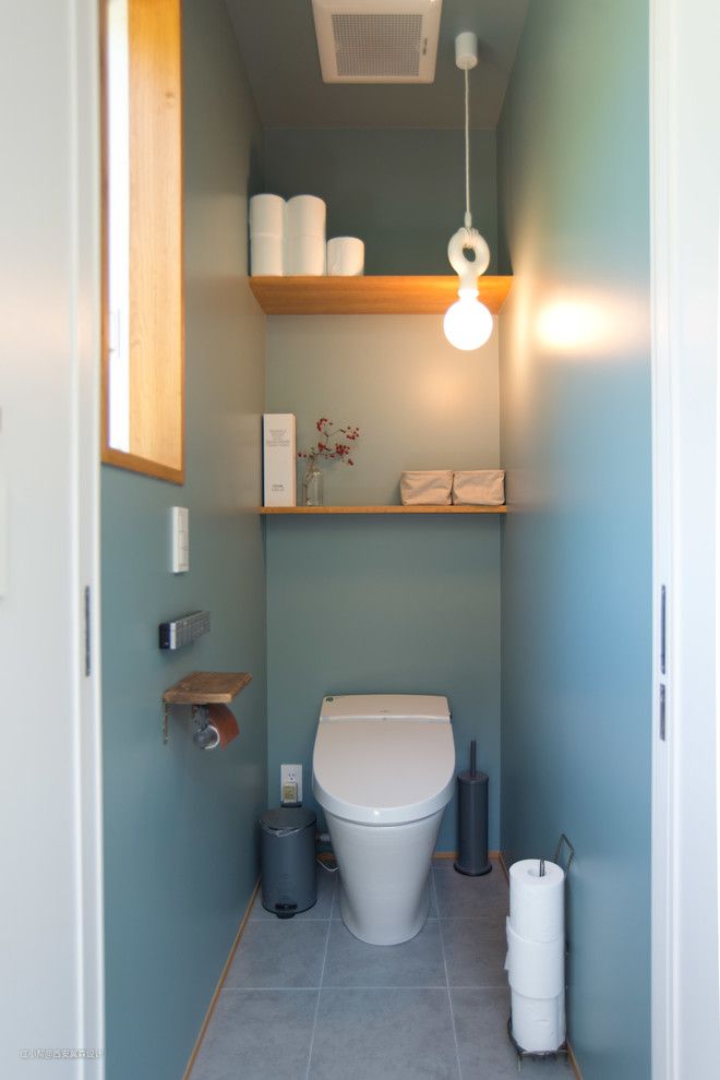 ▲简单的两块搁板,就能让马桶背后的墙变成收纳架。比柜体显得更轻盈,也有展示陈列作用。