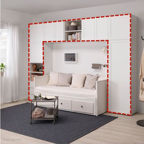 这种要求打制那种带抽屉柜的卡座沙发,形成口字型柜子,这样收纳功能更强,视觉整体性也会更好。
