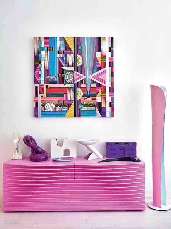 孟菲斯以高度娱乐、戏谑、玩笑和俗艳的方法,来达到与正统设计完全不同的效果,表达丰裕时代里的艳俗和平庸,企图用新的装饰细节达到设计上的宽松和舒展的心态,孟菲斯这种无厘头不按常理出牌却又极具表现力的属性契合了现如今年轻人的价值观,同时也对那些固有的传统设计思维进行了重新定义。成了那个时代最高级的颜色。