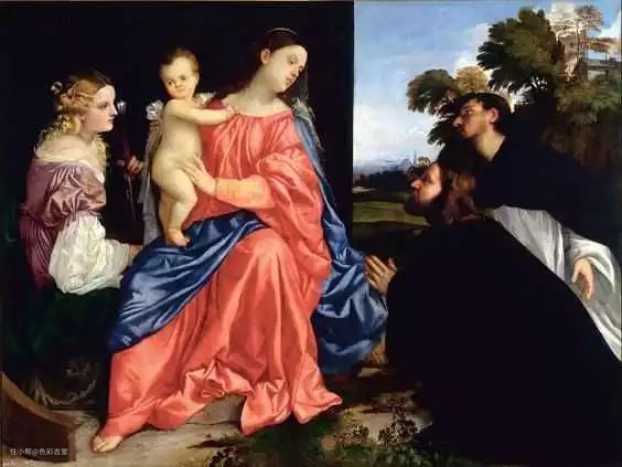 不管是以画圣母而闻名的拉斐尔,还是作为文艺复兴第一位将色彩当成主题的艺术家提香,他们画的圣母着装千篇一律都是这种红色和蓝色的撞色,是文艺复兴时期最为高级的颜色——也是画家专门为圣母配的色。